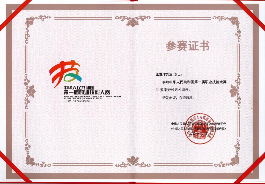2020年世界技能大赛3D数字游戏艺术项目全国优胜奖