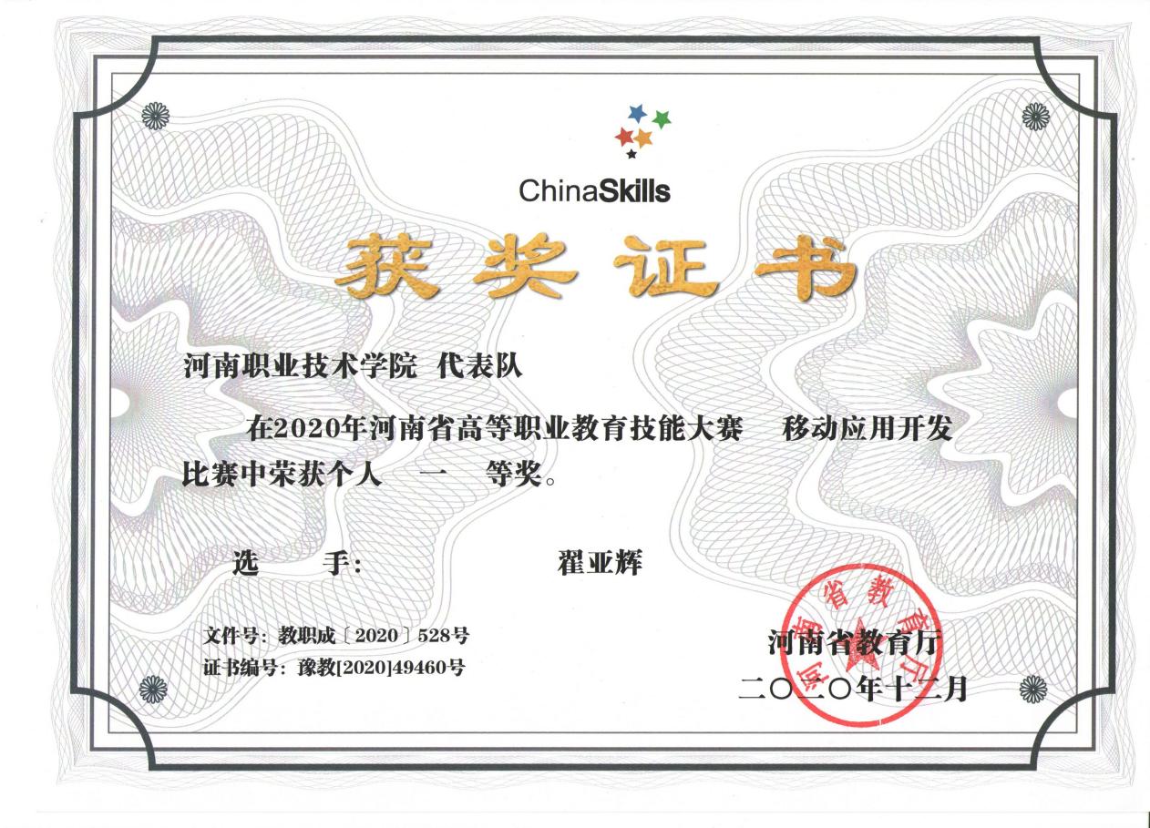 【建设成果】移动应用开发专业经过几年的发展,目前已建成一门《信息技术》课程思政示范课和一门《Android应用开发基础》精品在线开放课程。教师积极参与专业课程云教材和活页式教材建设工作,认真贯彻立徳树人,参与建设课程思政案例库等;本专业员工积极参加全国职业院校技能大赛,并多次获奖。 2017年,全国职业院校技能大赛高职组河南省选拔赛移动互联网应用软件开发,团体二等奖。 2018年,全国职业院校技能大赛高职组河南省选拔赛移动互联网应用软件开发,团体二等奖。 2020年,河南省高等职业教育技能大赛移动应用开发赛项,个人一等奖。
