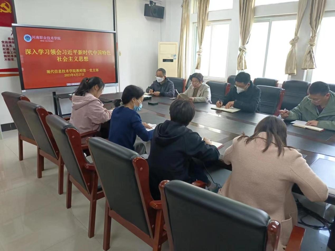 4月27日下午,信息技术学院教师第一党支部在笃行楼508开展了 “深入学习领会习近平新时代中国特色社会主义思想”专题学习活动。