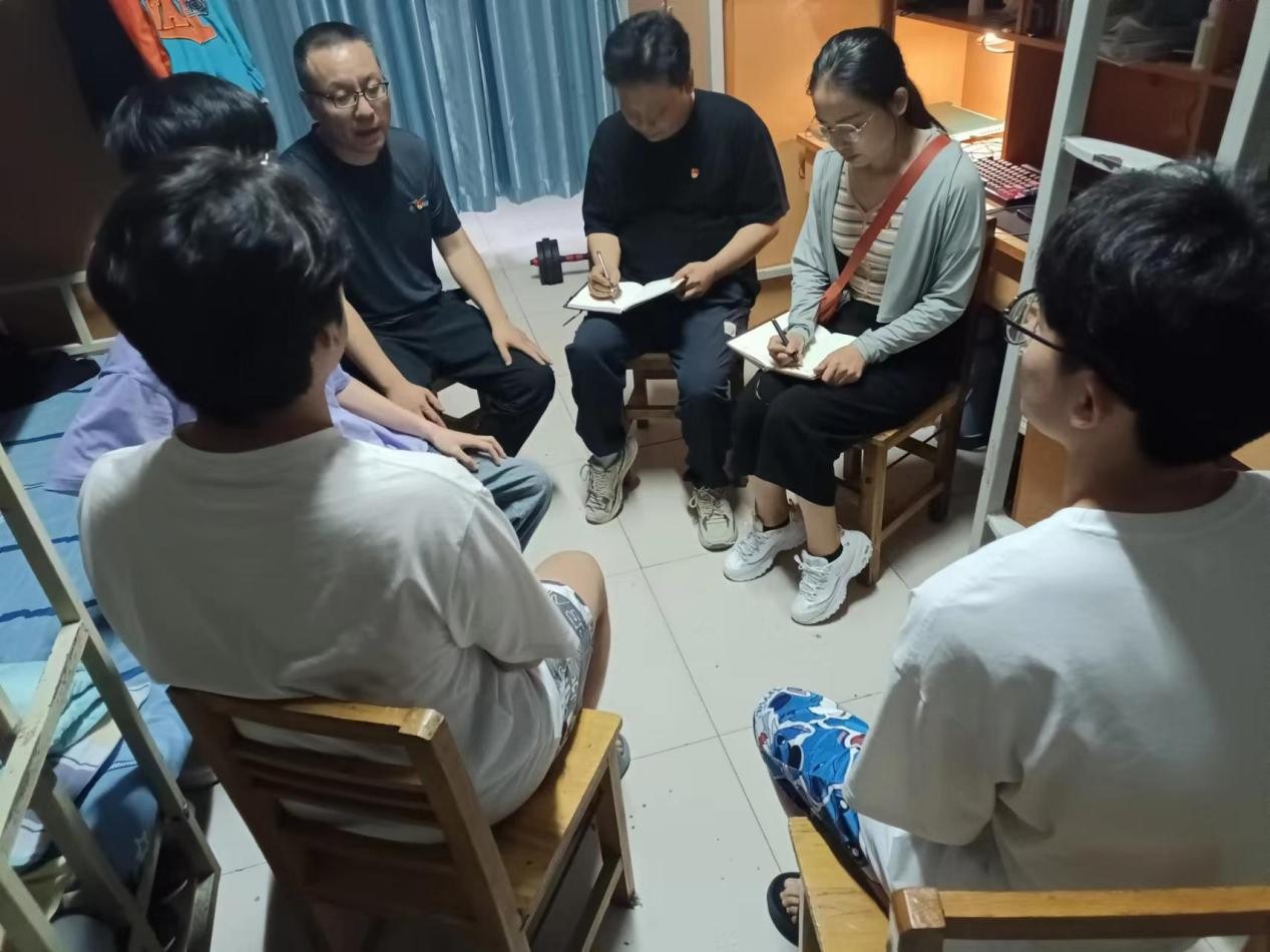 在员工宿舍里,郑宝林和教师党支部党员们与员工们亲切交流,询问他们的学习、生活情况,并听取他们的意见和建议。老师们与员工进行了亲切的的交谈,对员工提出的疑问进行了逐一解答,并记录下同学们的心愿。