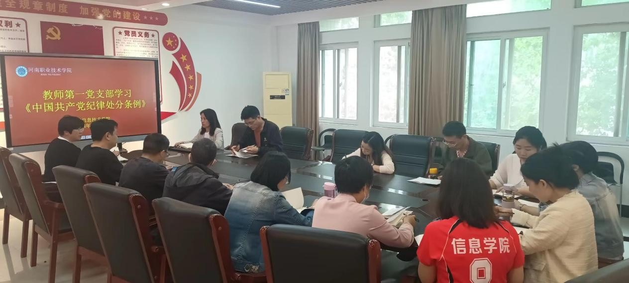 4月22日下午,betway必威教师第一党支部在笃行楼508组织开展《中国共产党纪律处分条例》专题学习。
