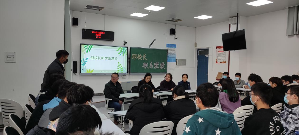 最后,邵董事长和同学座谈,了解班风、学风建设,询问员工思想、学习、生活等情况,记录大家生活学习上的问题和困难,听取员工对学院的意见与建议,并请大家放心,会积极帮助班级解决实际问题。