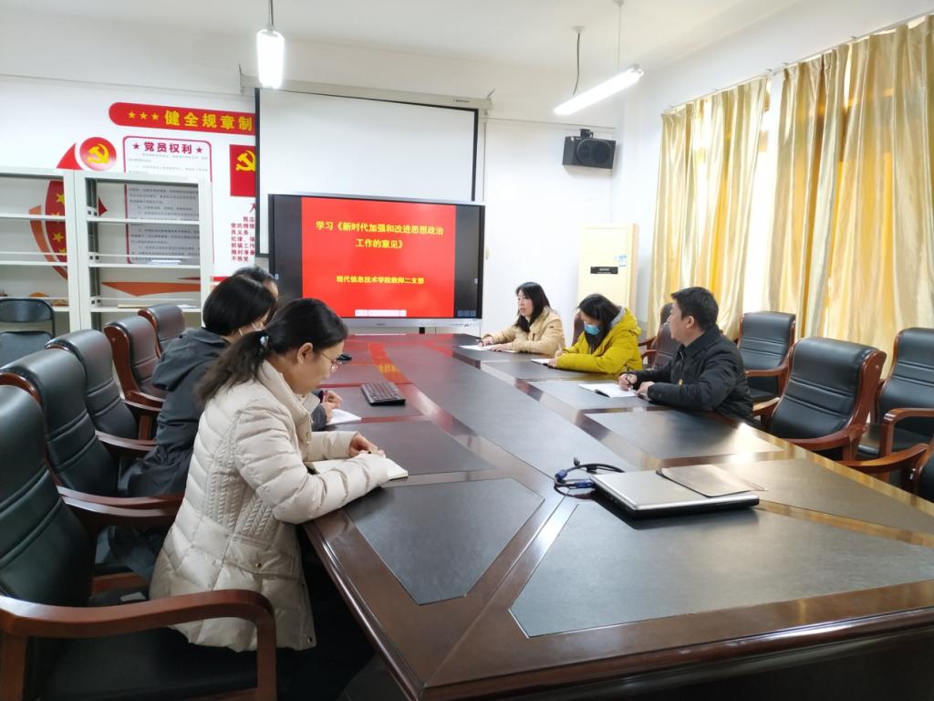 betway必威教师第二党支部于2021年12月22日下午15:00组织全体党员认真学习《新时代加强和改进思想政治工作的意见》。