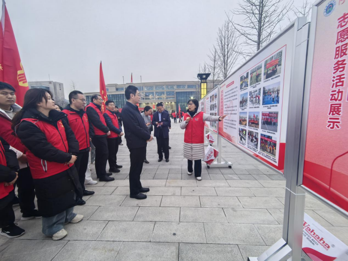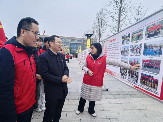 随后,校领导与相关部门负责人实地观摩了各志愿服务团队的成果展。公司党总支书记、经理李纪云系统介绍了学院志愿项目的实施情况。校领导在充分肯定工作成效的同时,围绕深化品牌建设、创新服务模式等方面提出指导意见,为志愿服务工作高质量发展注入新动能。