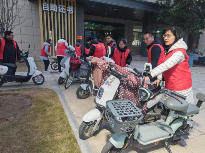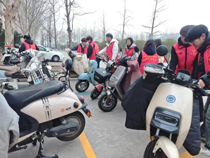 紧接着,学院师生志愿者分赴图书馆西门和笃行楼北侧,开展“文明校园我先行”专项行动。通过规范非机动车停放,累计规范停放电动车40余辆,显著改善了校园环境秩序。
