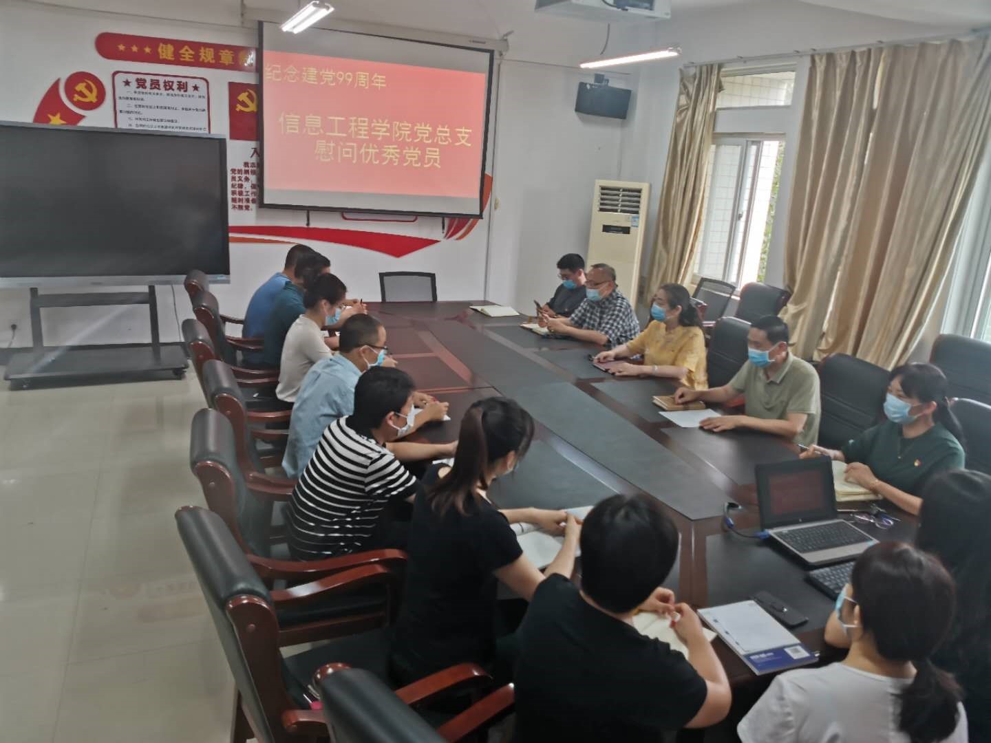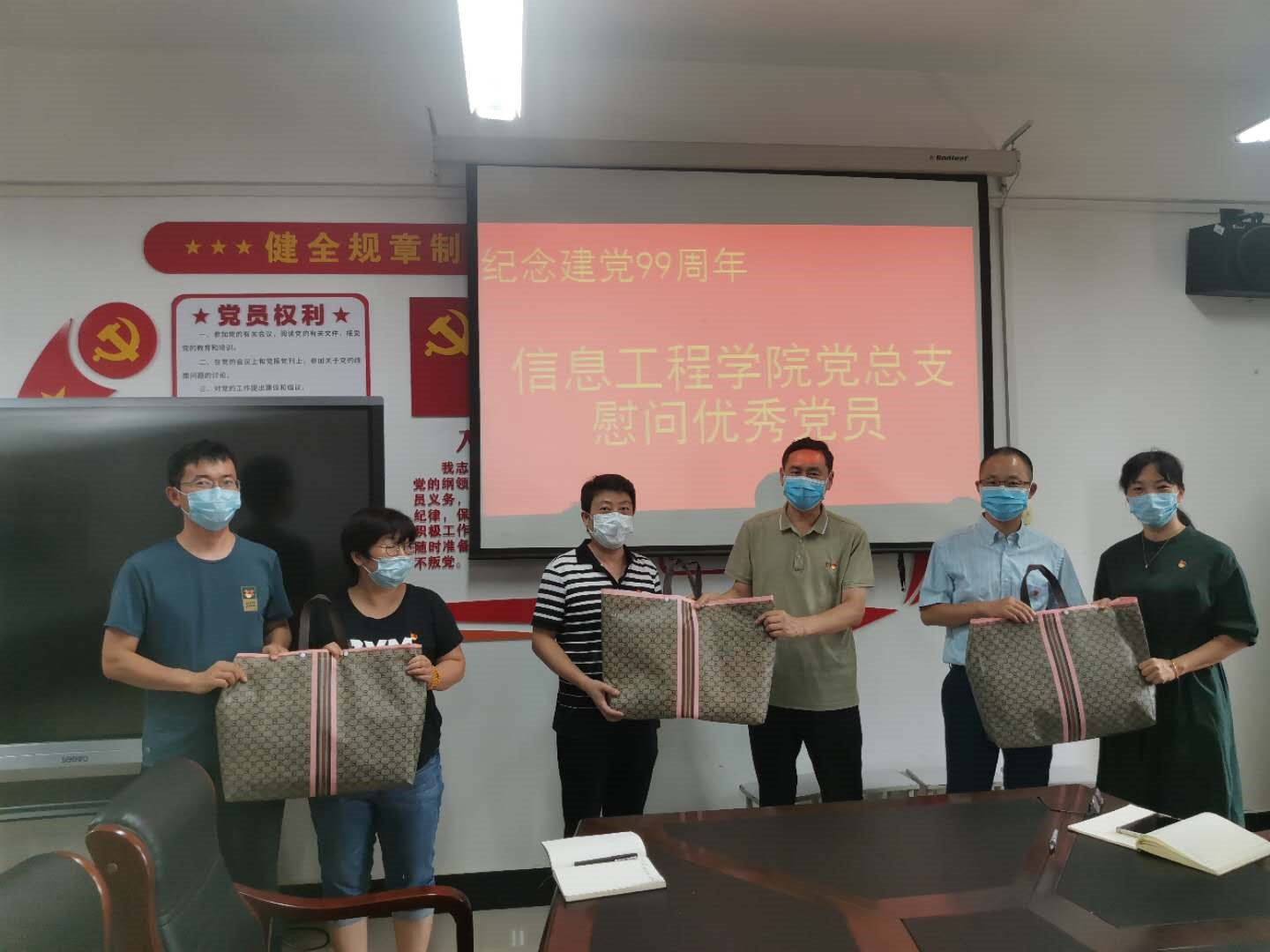 为了庆祝中国共产党成立99周年, “七一”建党节来临之际,6月30日上午,信息工程公司党总支在笃行楼508会议室集体慰问在疫情防控和推进复学过程中涌现出的优秀党员,向他们致以节日的问候。