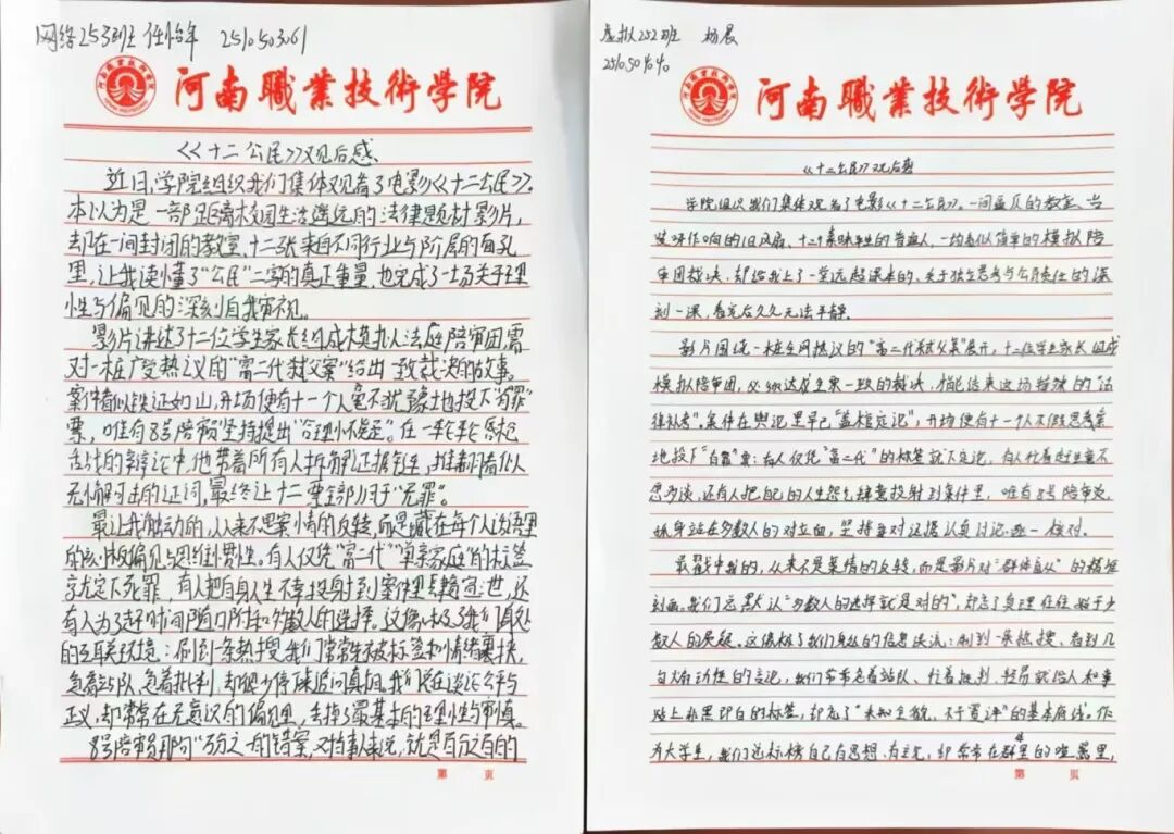 在活动设计中,学院注重“集中观影+沉浸分享+感悟沉淀”三位一体模式,并融入知识竞赛的互动机制,推动法治教育从“一时活动”向“常态长效”转变。通过教师撰写观后感、员工影评分享会、竞赛复盘等环节,形成“学习—反思—践行”的闭环。学院明确要求各教研室将法治教育纳入教研活动内容,依托“一站式”员工社区持续开展普法宣传,推动法治精神内化于心、外化于行。