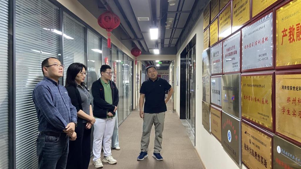 为深化产教融合、落实“五金”建设与“双高”建设任务,4月22日,人工智能与信息技术公司党总支书记兼经理李纪云、副经理董俊磊、计算机网络技术教研室主任董帅等一行赴河南信安世纪科技有限公司走访调研,就校企协同育人、专业共建、实习就业等事宜开展座谈交流。河南信安世纪校企合作总监常玉存、张桥民等相关负责人热情接待来访团队。