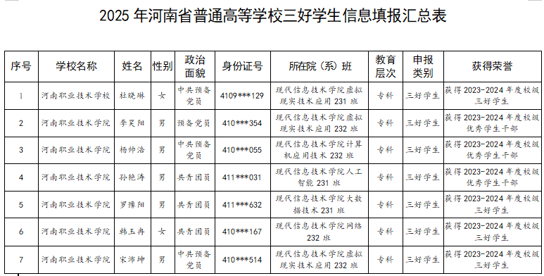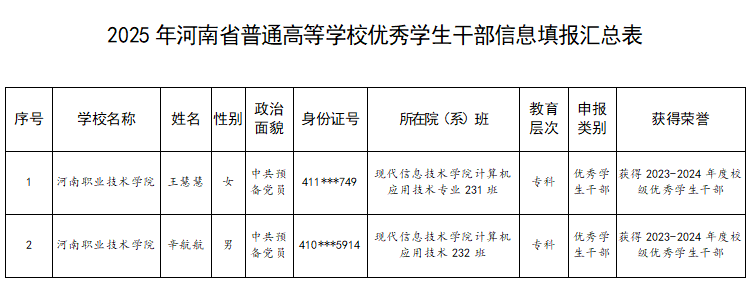 betway必威根据校团委《关于认定2025年河南省普通高等学校三好员工、优秀员工干部和先进班集体的通知》要求,现将认定结果进行公示:
