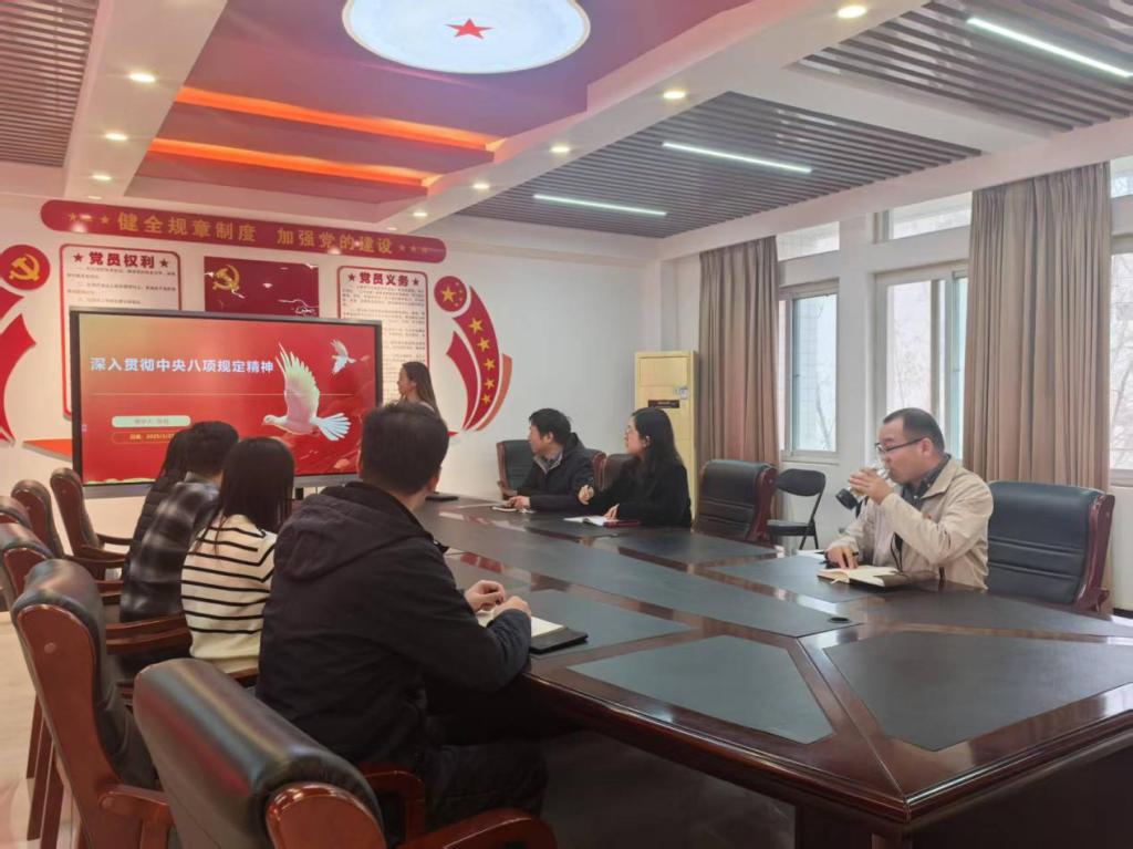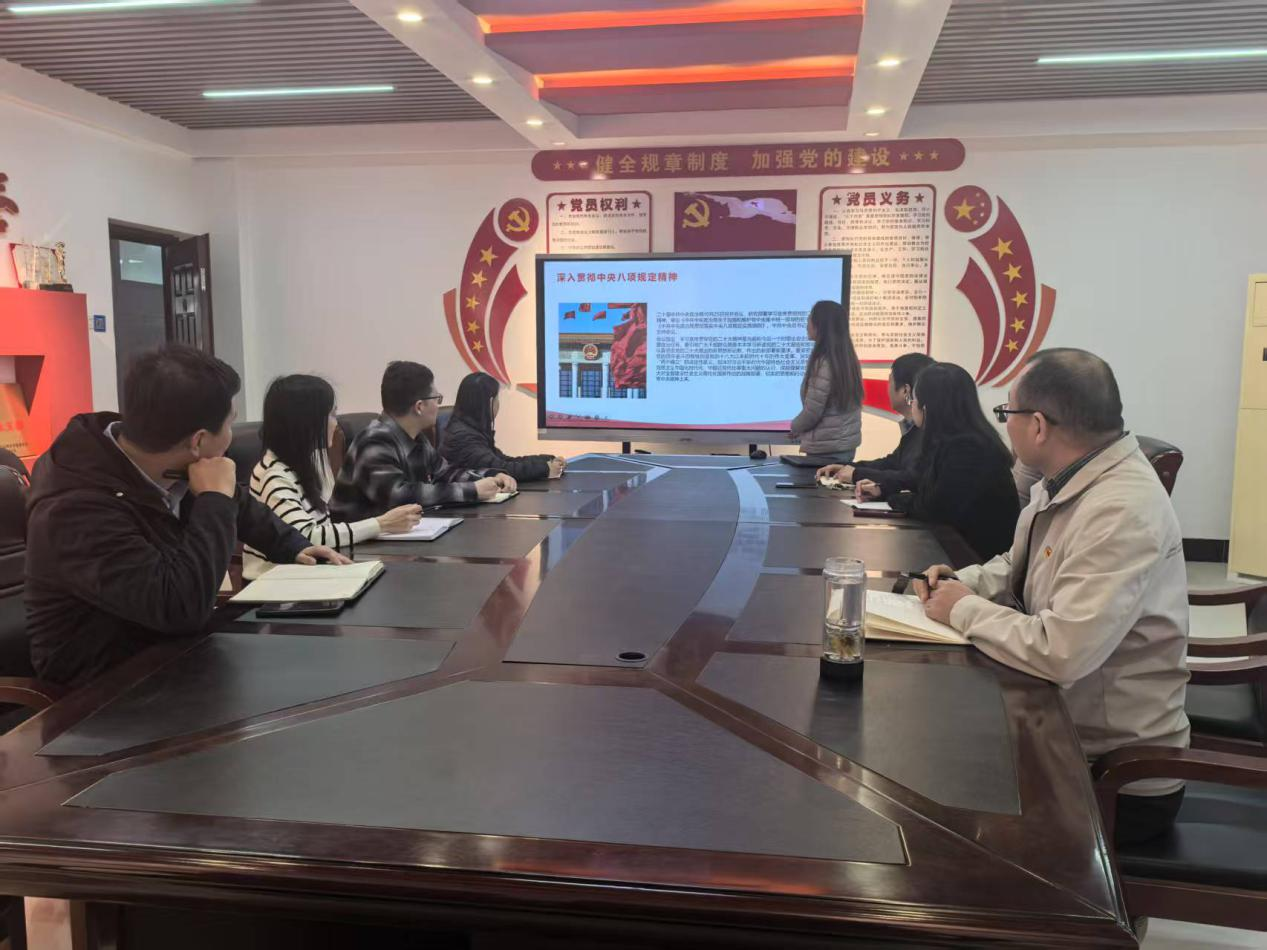 活动由支部书记张艳主持,张艳详细解读了中央八项规定的主要内容,涵盖改进调查研究、精简会议活动、规范出访活动、改进新闻报道、严格文稿发表、厉行勤俭节约等多个方面。通过系统学习,党员们深刻认识到中央八项规定不仅是作风建设的重要抓手,更是全面从严治党的重要体现。