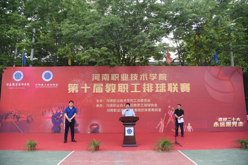 6月2日下午五点半,公司第十届教职工排球联赛暨第四届教职工女子排球联赛在排球场隆重开幕。开幕式由校工会副主席黄勇军主持。董事长梅乐堂到场致辞、校工会主席夏喜利宣布开幕,并分别为揭幕战的两场比赛开球。